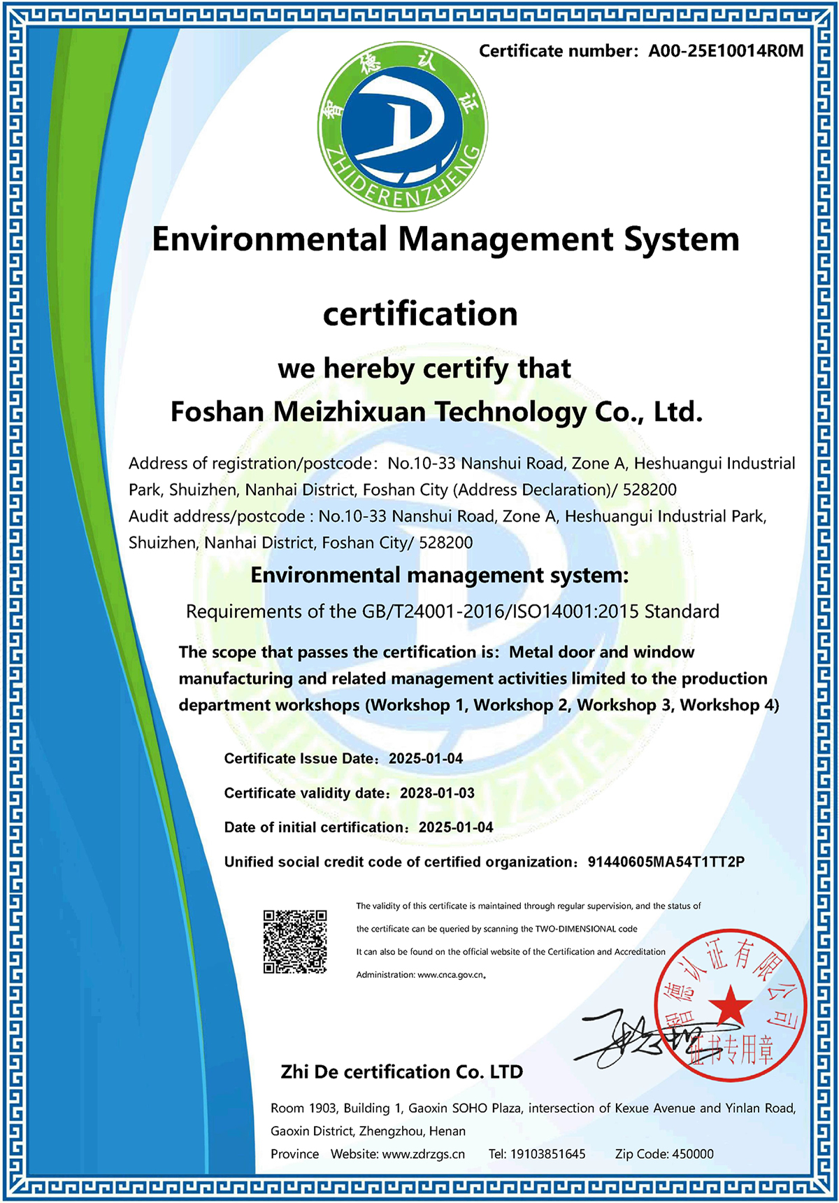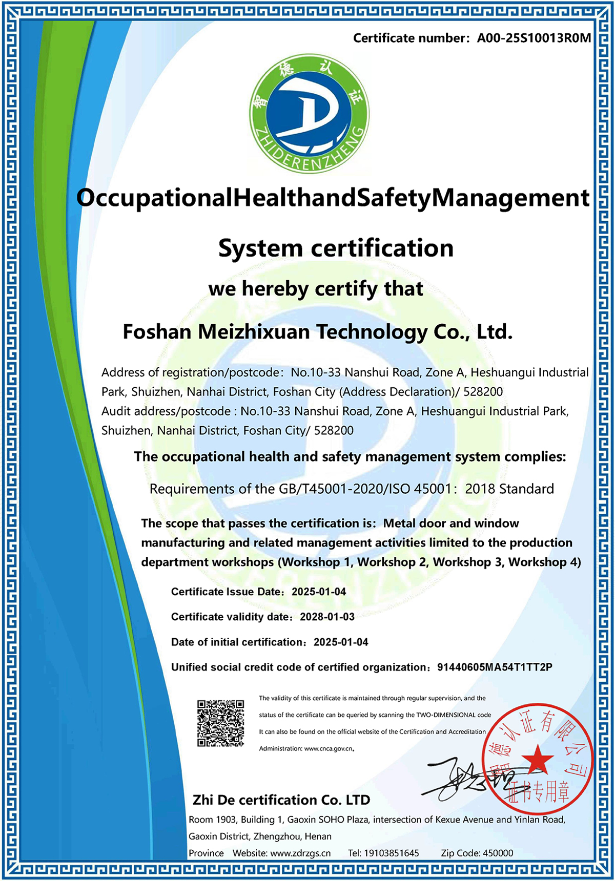 The company has built a total of 300,000 square meters of intelligent manufacturing bases in Foshan, Guangdong Province and Sihui, Zhaoqing. The base is equipped with advanced automated production lines, full welding systems, nano-spraying and a full set of numerical control technologies, ensuring high-precision, high-efficiency production and stable delivery of door and window products.